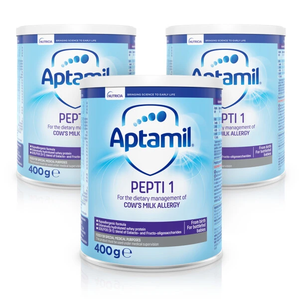 Aptamil Pepti 1 from Birth is designed to provide fast and effective relief of cow’s milk allergy. Aptamil Pepti 1 is an extensively hydrolysed formula in which the milk proteins present have been broken down (hydrolysed) to reduce the likelihood of them causing an allergic reaction.