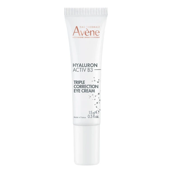Av?ne dermatological laboratories have created Hyaluron Activ B3 Eye Care, containing dextran sulphate, pure hyaluronic acid (high and low molecular weight) and niacinamide (6%) to act on the cause and signs of ageing*. Hyaluron Activ B3 triple correction eye care is an eco-conscious product containing 93% ingredients of natural origin, not derived from animals. Its gel-cream texture provides an immediate fresh effect. The eye contour feels firmer. Wrinkles, bags and dark circles are filled in. Fragrance-free, this product is suitable for the eye contour area, even sensitive ones, as well as the lip contour area. It is also a good base for make-up.