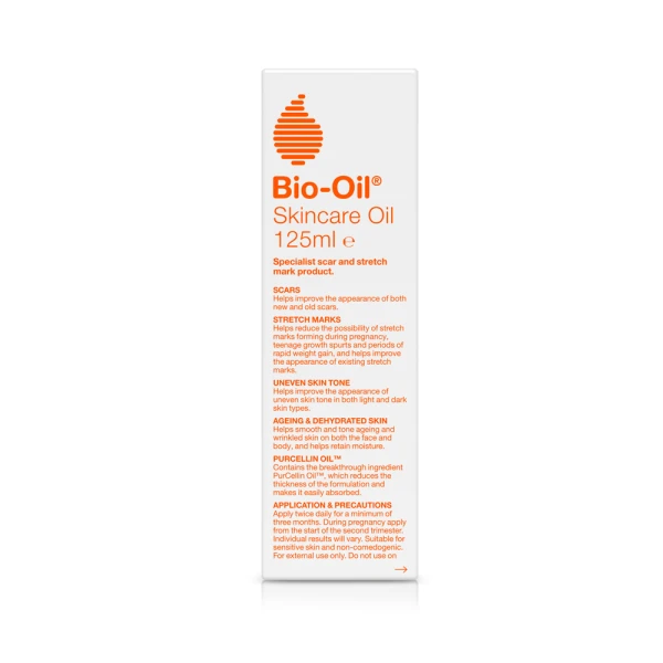 Bio Oil 125ml is an award-winning skin care product to help improve the appearance of scars, diminish the uneven skin tone, and increase the elasticity of the skin to decrease stretch marks.
