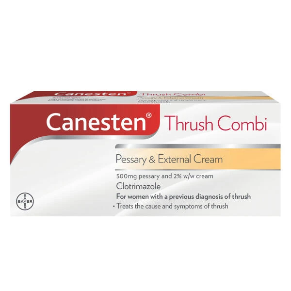Canesten Thrush Combi Pessary & External Cream gives you a twin-kit of products that can help treat thrush internally and externally. Both products contain the active ingredient Clotrimazole.