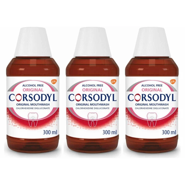- 3 bottles Corsodyl Gum Problem Mouthwash Original (300ml each)