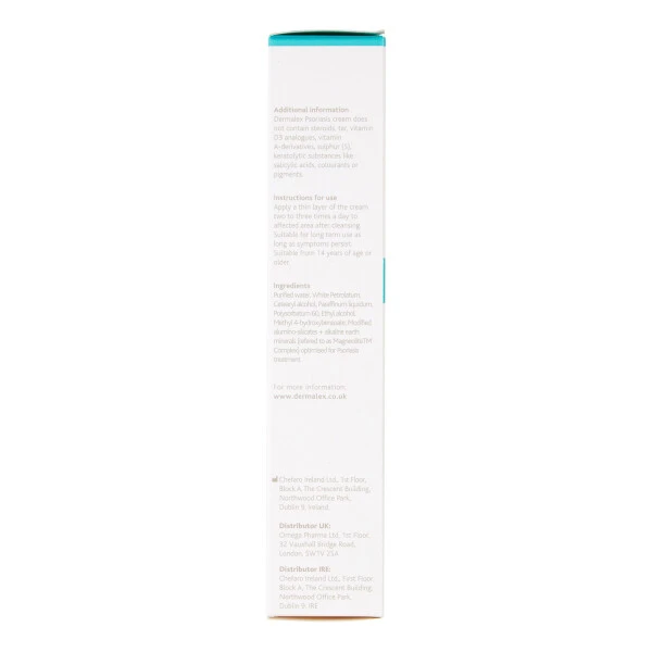 Dermalex Psoriasis Treatment Cream reduces the typical symptoms by normalising skin cell production and the maturation time. It accelerates the skin barrier recovery via activation of the skin’s own repair mechanism and fortifies the skin barrier through the creation of a protective shield and prevention of water loss from inside to outside. Dermalex Repair Psoriasis is a dermatological product for the treatment of Psoriasis skin symptoms such as scaling, itching, red spots, hardened and thickened skin. Dermalex Psoriasis Treatment Cream does not contain corticosteroids, tar or tar products, vitamin D3 analogues, vitamin A-derivates, sulphur (S), keratolytic substances like salicylic acids and colourants.