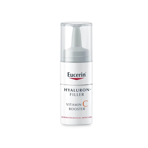 Eucerin Hyaluron-Filler 10% Pure Vitamin C Booster is the ideal solution to tired-looking skin caused by the sun, pollution, and smoking. The concentrated daily serum contains 10% activated vitamin C to stimulate collagen production and strengthen your skin’s natural barrier. Peel back the foil but make sure the cap is on. Press the button 2 to 3 times to activate the Vitamin C, then shake the tube for at least 10 seconds. Take the cap off and press the button to dispense the silky serum. Different to most Vitamin C products Eucerin’s innovative shake and press tube ensures that the Vitamin C stays freshly-activated when you need it. Discover brighter, more luminous skin with Eucerin Vitamin C Booster.