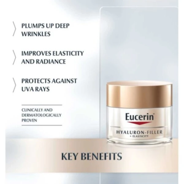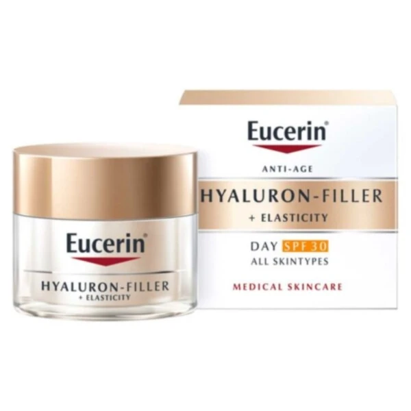 Address deep wrinkles and skin firmness with the Eucerin Hyaluron-Filler Elasticity Day SPF 30, a daily moisturising cream for mature skin.