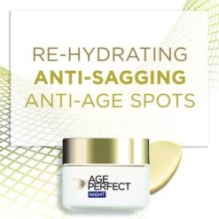 L’Oreal Paris Age Perfect Re-Hydrating Night Cream helps to reduce the appearance of wrinkles, saggy skin, and age spots, during and after the menopause. This product is specially formulated for mature skin to help skin appear more supple without a fresher complexion and a renewed bounce.