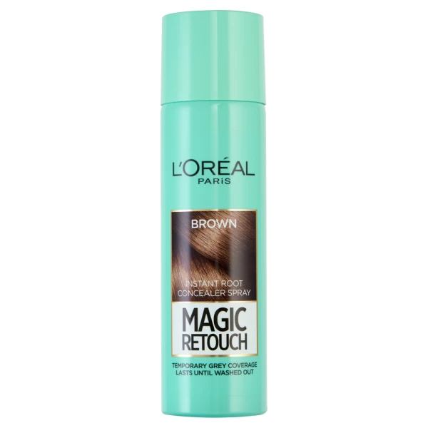 L’Oreal Paris Magic Retouch Instant Root Concealer Spray Brown is a pinpoint micro-diffuser that precisely targets grey hair and the rich colour pigments give you perfectly blended coverage. Perfectly covers grey roots in seconds.