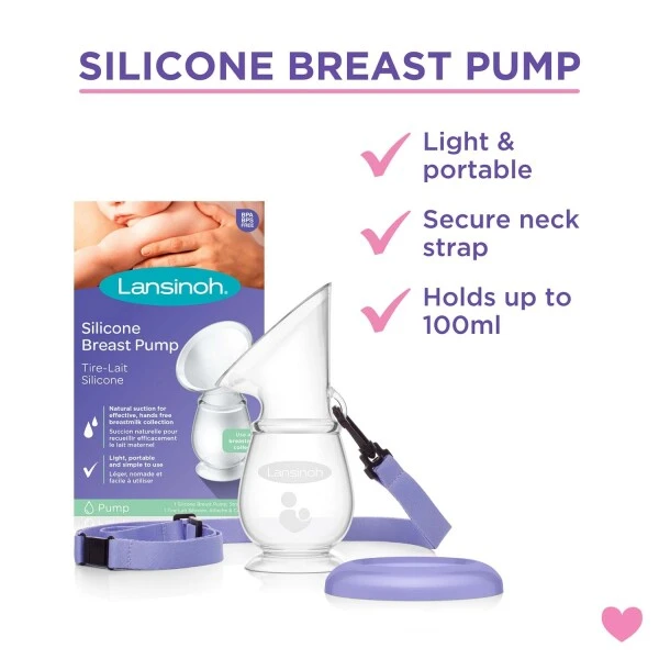 The Lansinoh Silicone Breast Pump is suitable for all breast sizes, due to its wide silicone neck and simple suction technique when applied to the breast. Includes the added security of a neck strap to ensure if the breast pump is moved, knocked or nudged by baby, collected breast milk will be safe.