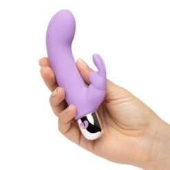 The Lovehoney Frisky 10 Function Silicone Rabbit Vibrator Purple hones in on your G-spot with 10 earth-shaking modes, while the perky ears quiver against your clitoris. The firm shaft has a contoured, flexible head and a powerful motor for incredible G-spot stimulation, while the rabbit ears nuzzle against your clitoris for external thrills. It is completely waterproof, so feel free to take it for a dip. Squirt plenty of water-based lubricant onto the ears and shaft to fully enjoy your vibrator.
