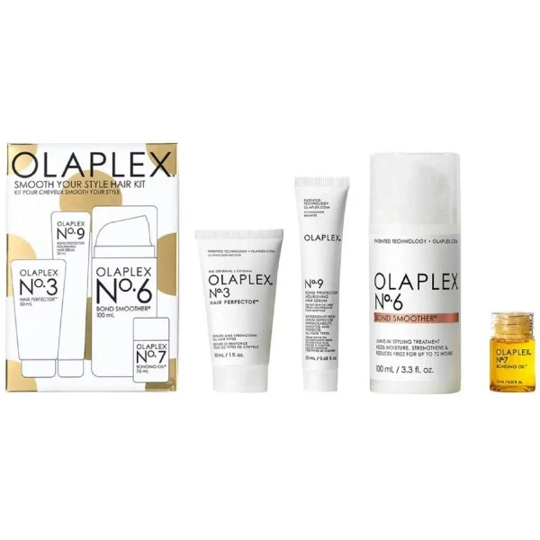 Olaplex Smooth Your Style Hair Kit is a hair strengthening, fizz controlling kit that has been put together ease you into a hair repair routine. This unique kit comes with the following: