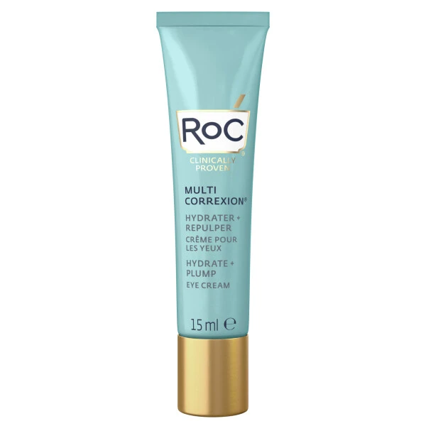 RoC Multi Correxion Hydrate & Plump Eye Cream provides a complete age-defying eye recovery! This gel-cream visibly lifts, smooths, and awakens eyes. It has been specially formulated to target the delicate eye area. Hyaluronic Acid instantly re-plumps lines and wrinkles while Peptides visibly lift and firm the eye contour. Added Caffeine awakens and alleviates the appearance of eye bags and puffiness. See the power of 3 age-defying results in 1 eye cream. After 72 hours the eye area is deeply hydrated and after 2 weeks crow’s feet, fine lines, and wrinkles are visibly reduced. After 4 weeks, the eye contour is visibly lifted and firmed.