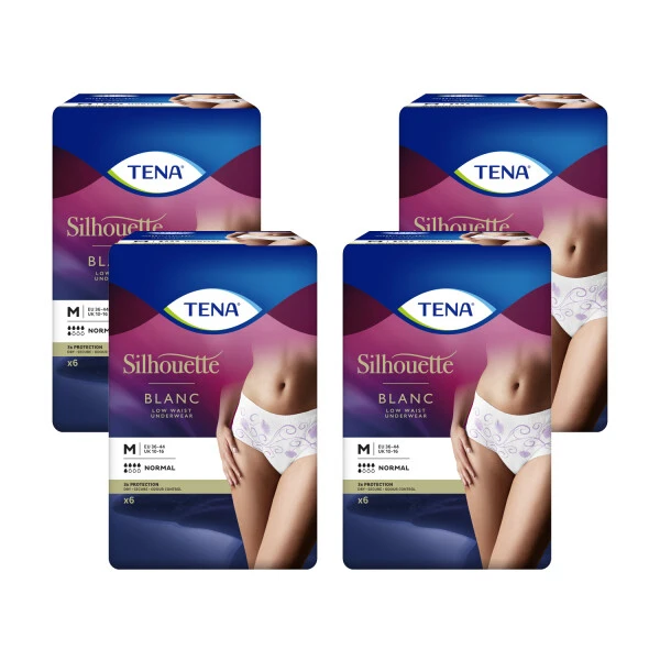 TENA Silhouette Normal Blanc Medium offer superb security and discretion, no matter what activity your day holds. They are thin and soft and stretch to fit the shape of your body. Like everyday underwear, they are undetectable under even slim fitting clothing. They quickly absorb and retain urine and have Odour Control to leave you feeling fresh all day or night.