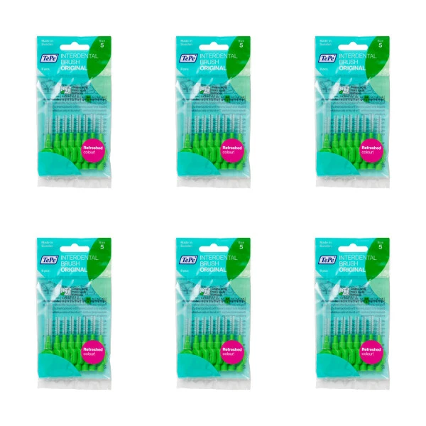 TePe Interdental Brushes Original Green 6 Pack are designed specifically to clean in-between your teeth and all those hard to reach places. These special brushes are designed with a metal wire that cleans your teeth thoroughly.