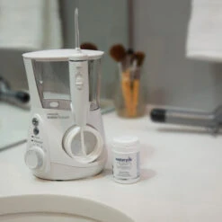 Waterpik Whitening has been clinically proven to remove an additional 25% of teeth stains vs traditional brushing alone. This easy and effective whitening tool easily removes 99% of plague from treated areas as well as improving gum health and strength vs standard flossing. Waterpik Whitening is ideal ofr removing plague and debris deep between your teeth and below the gum line and can be used on implants, crowns, bridges and veneers.
